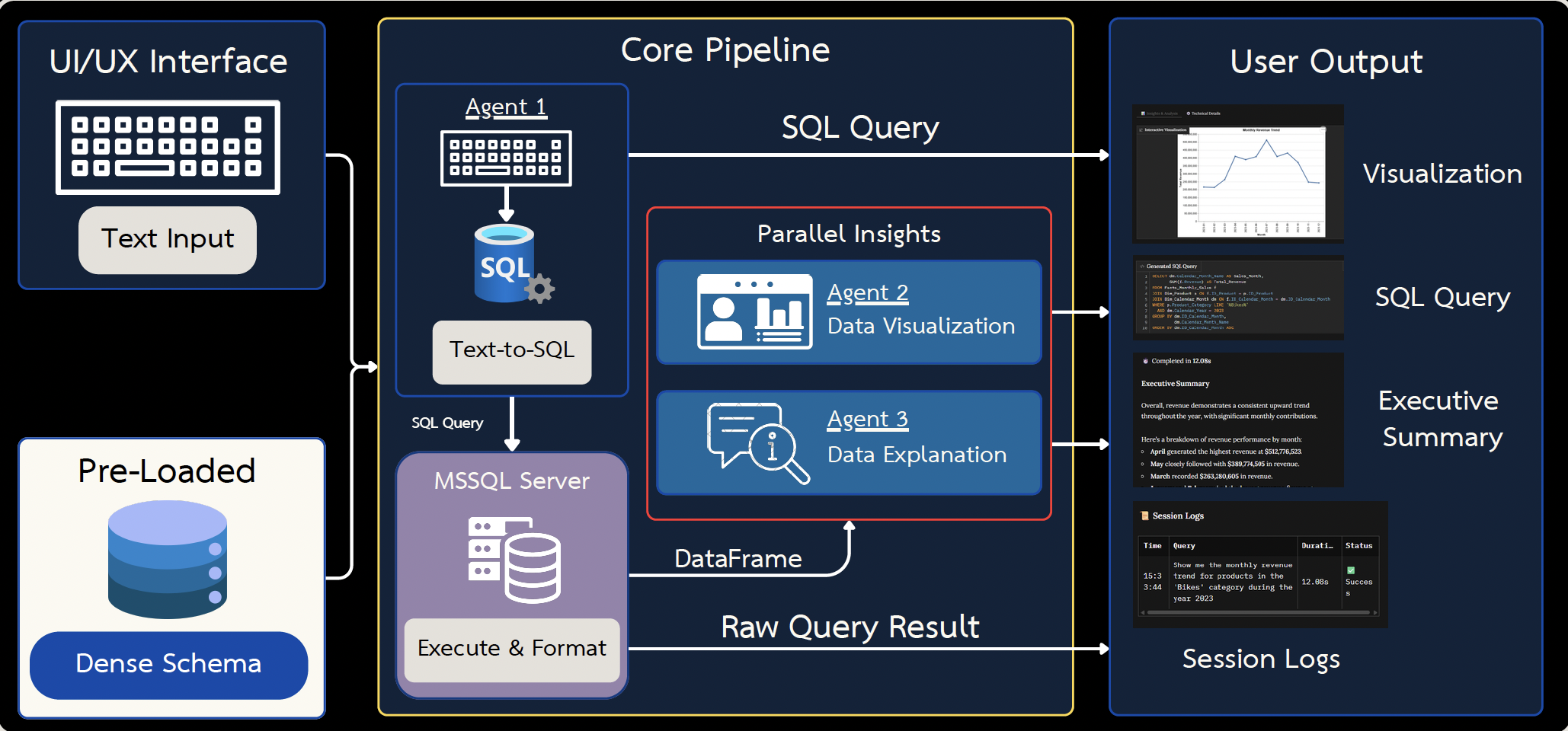 Agentic AI lässt sich leicht abstrakt diskutieren. Spannend wird es erst, wenn ein System ein reales Fachproblem Ende zu Ende löst: eine natürlichsprachliche Frage verstehen, in sicheres SQL übersetzen, die Abfrage verlässlich ausführen und das Ergebnis als Tabelle, Visualisierung und geschäftlich verständliche Erklärung zurückgeben.